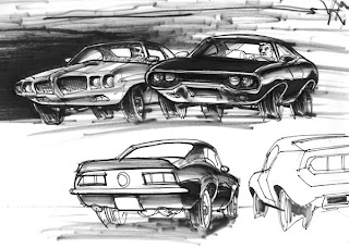 I have a blog. The world is coming to an end. Ha! Anyhoo, I like drawing old cars doing stuff, among other things. These guys were done fairly quick and reference free, but I like them.